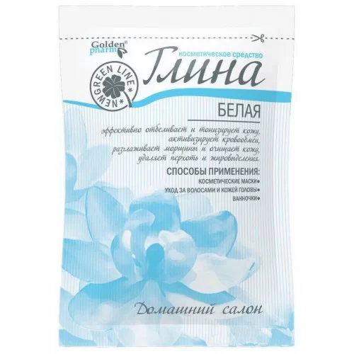 Не менее доступным и эффективным средством считают белую глину от Golden Farm. Продукт можно встретить в большинстве аптек. Чистейшая консистенция глины не содержит никаких частиц, запаха или оттенка. Готовить маску для лица элементарно. Порошок разбавляют с водой в соотношение один к одному. При нанесении на кожу он провоцирует выработку лецитина, тем самым повышается упругость, уменьшаются воспалительные признаки.
