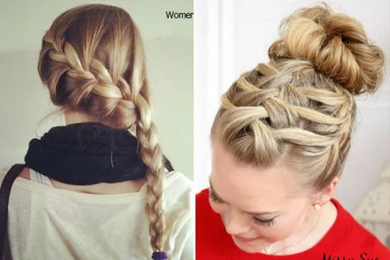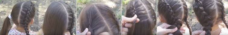 Вариантов причесок множество: прямой способ на хвосте, две параллельные косы, ободок вокруг головы, водопад, зигзаг, цветок или улитка, на бок или наискосок.
