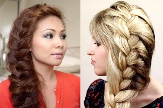 - пробор из косичек: сплетение боковых прядей, располагаемых с одной или двух сторон лица;