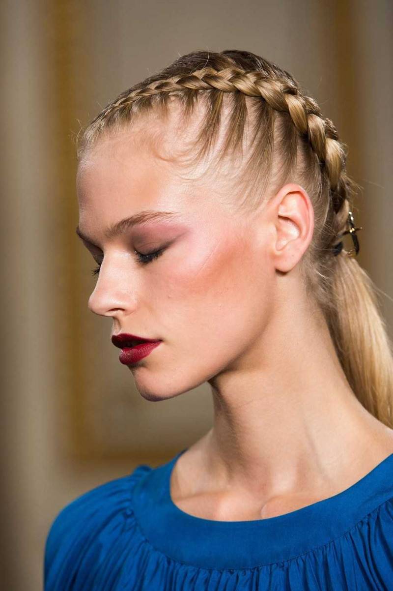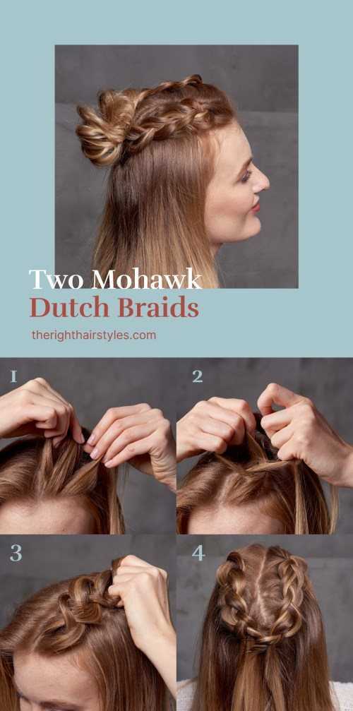 Еще одна прическа с голландскими косичками, которая создает привлекательный образ. Ирокез состоит из 2 кос, которые заплетены в верхней части головы. Прическа удлиняет круглое лицо и придает дерзкий вид. Такая укладка помогает скрыть длинную челку при отращивании.