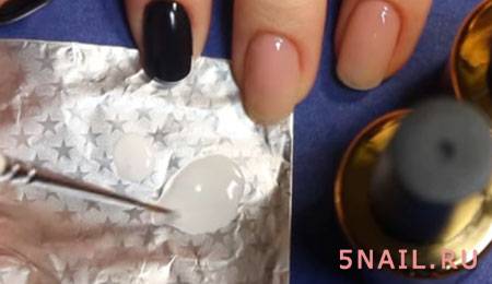На расстеленной фольге смешать топ и белый гель лак в соотношении 2:1.