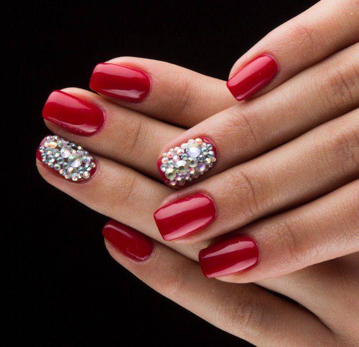 Блестки также отлично смотрятся в сочетании с плотными насыщенными цветами: синим, фиолетовым, бордовым, изумрудным и другими. Это могут быть как цветные пигменты, так и гель-лак с блестками.