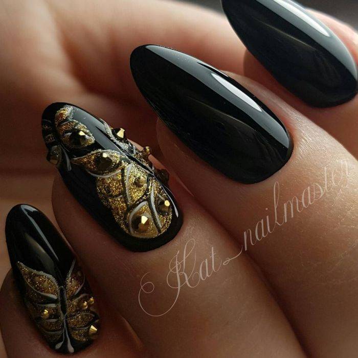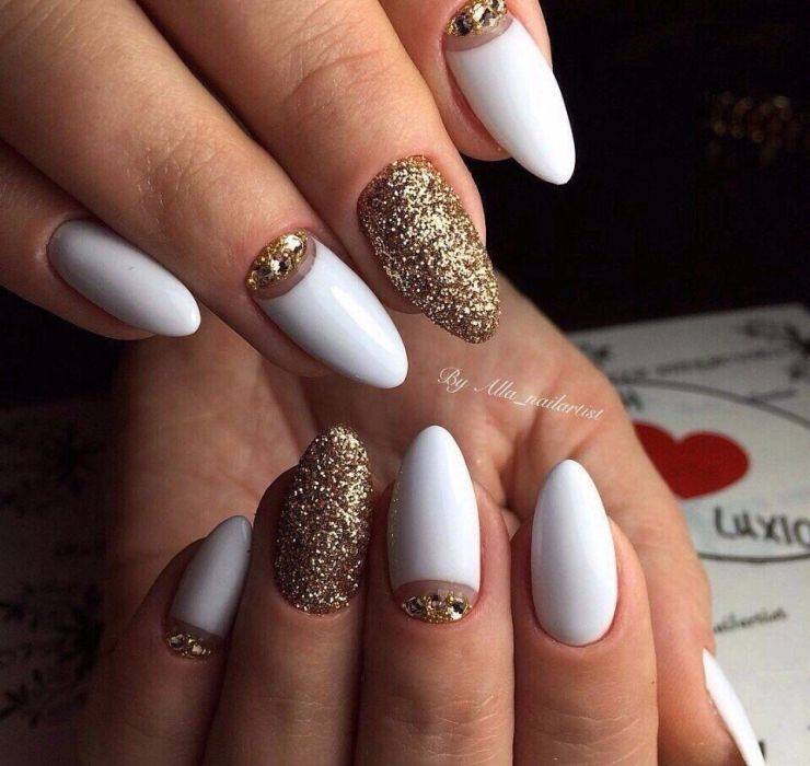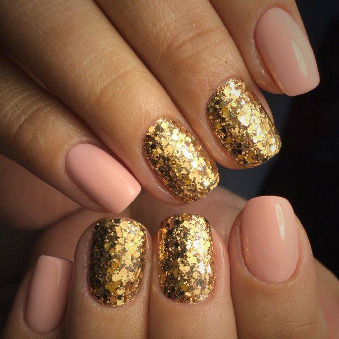 Любую версию маникюра можно превратить в незаурядную, если снабдить его стразами или блестками. А еще – можно совместить разные техники на разных ногтях, и у вас в запасе будет несколько вариантов красивого перелива омбре с золотом, рисунками и цветочным орнаментом.
