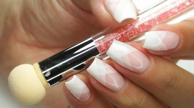 Спонж. Самый простой и общедоступный метод. Для выполнения нейл-арта понадобится специальная губка, которая продается в косметических магазинах. Но, как вариант, можно использовать и подручное средство. Подойдет губка для мытья посуды с тем условием, чтобы она была достаточно мягкой.