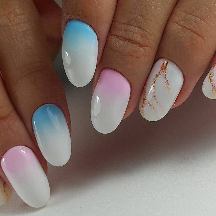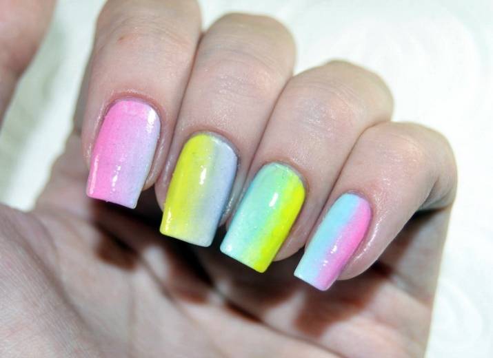 - Возможно, не очень хорошо подобраны цвета, например, слишком контрастные, и сложно их сгладить. О сочетании цветов в градиентном маникюре мы поговорим ниже.