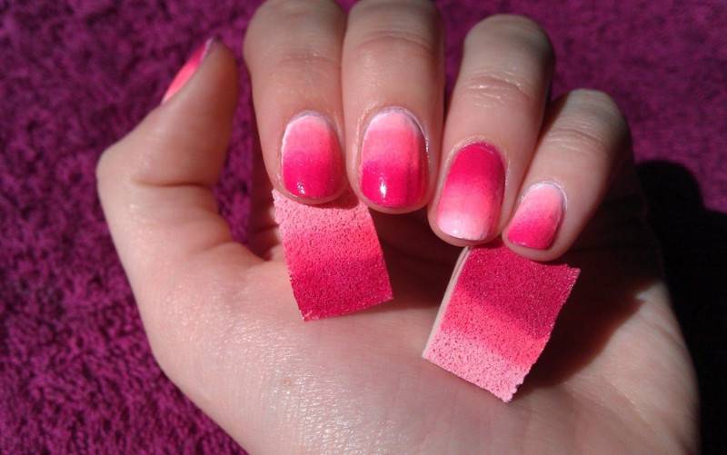 Техника омбре с помощью поролоновой губки состоит в следующем: