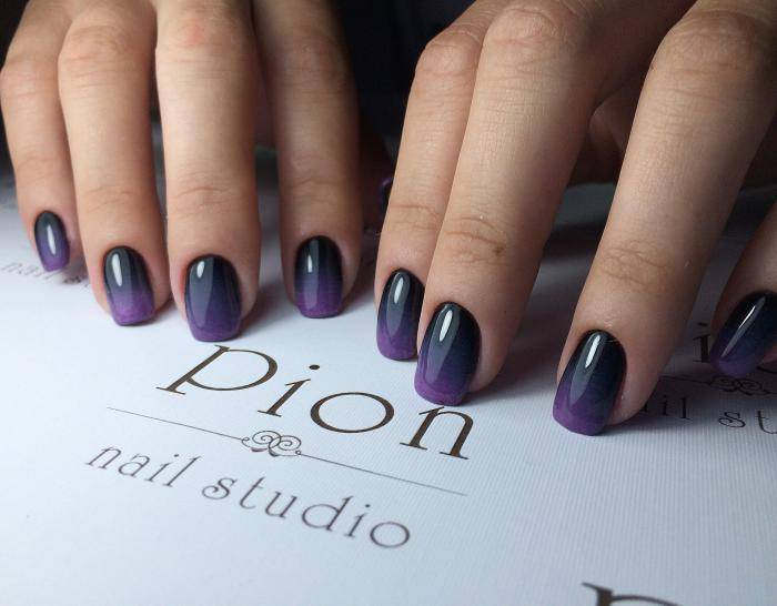 если ногти короткие, но сделать модный дизайн все равно хочется, стоит обратить внимание на вертикальную или простую растяжку; темный тон у основания ногтевой пластины лучше подходит длинным ногтям, т.к. может визуально их укоротить; когда цвета контрастны, границу между ними стоит обозначить как можно четче; чтобы получить интересный маникюр, лучше использовать большее количество лаков; выбор матовых лаков будет не самым удачным при создании дизайна градиент, глянцевые же усилят эффект; сами лаки должны быть одной текстуры, интересным будет результат от использования термолаков