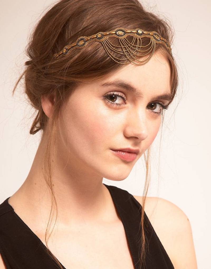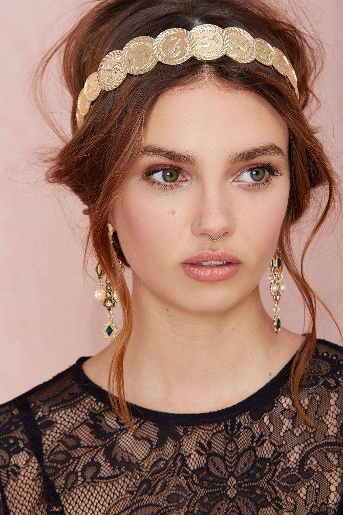 Вместо подвязки для создания греческой прически можно использовать косы или бусы