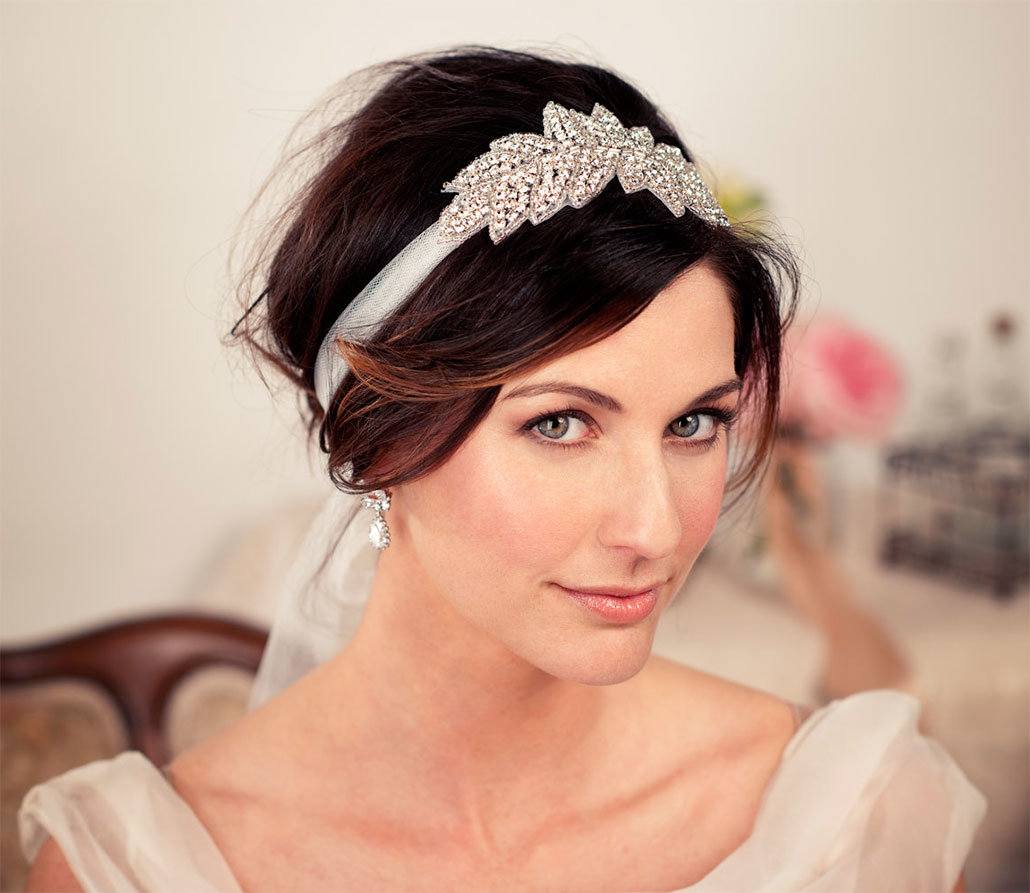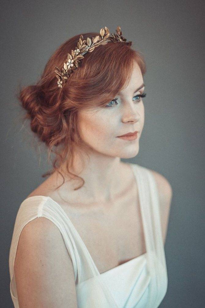 Греческая прическа с красивыми аксессуарами на короткие волосы, фото