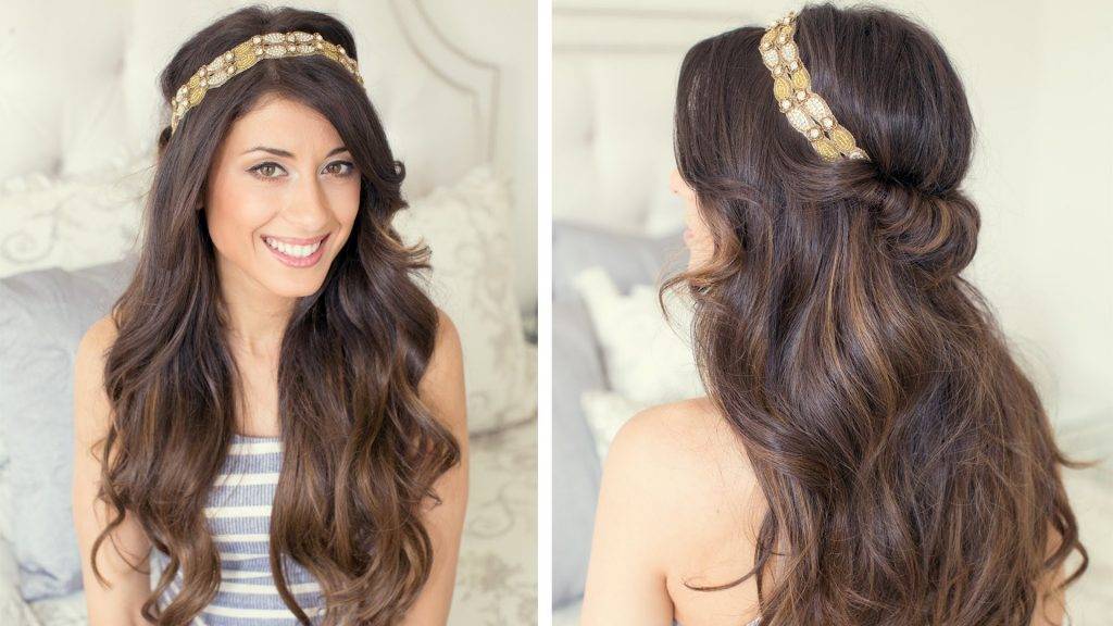 Также на распущенные волосы можно просто надеть ободок или же повязку и вуаля, все готово!