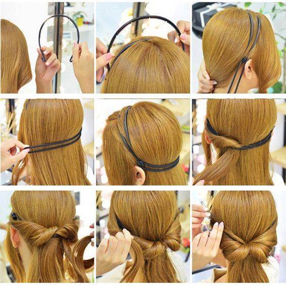 - Оставшиеся волосы нужно закрутить вокруг повязки и концы закрепить невидимкой.