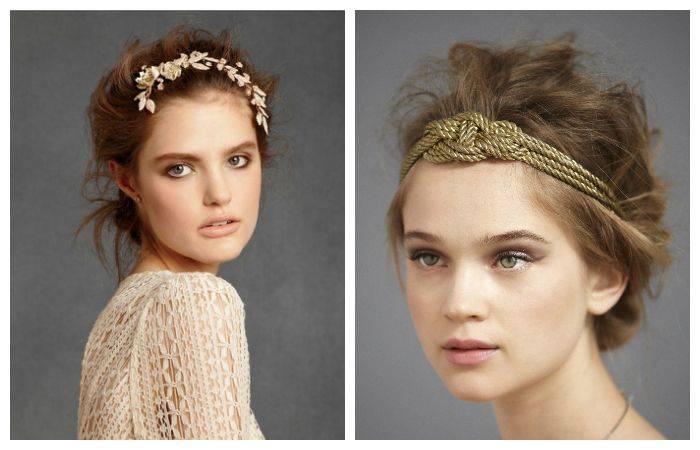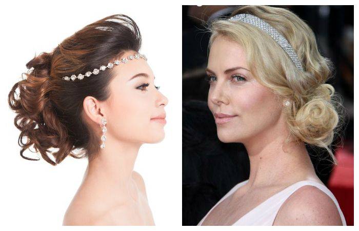 Используете простую повязку — тогда прическу можно украшать декоративными шпильками, и наоборот: декорированная, яркая повязка не сочетается с заколками со стразами и камешками.