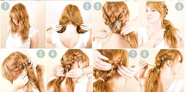 - Выполняйте эти действия с каждой стороны головы, пропуская небольшие прядки. Такая причёска будет выглядеть очень естественно.