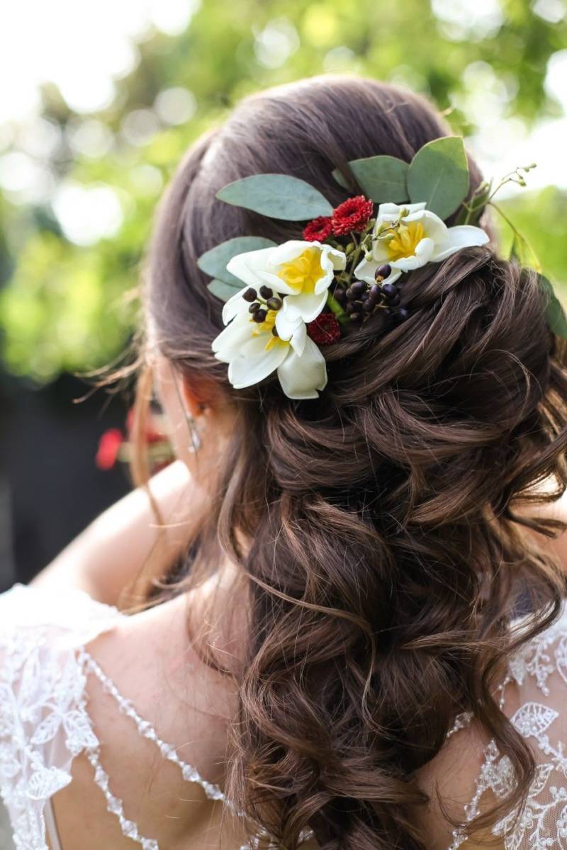 Аккуратно достаем прядки и придаем прическе каплю небрежности. Для большего придания женственности можно украсить цветком.