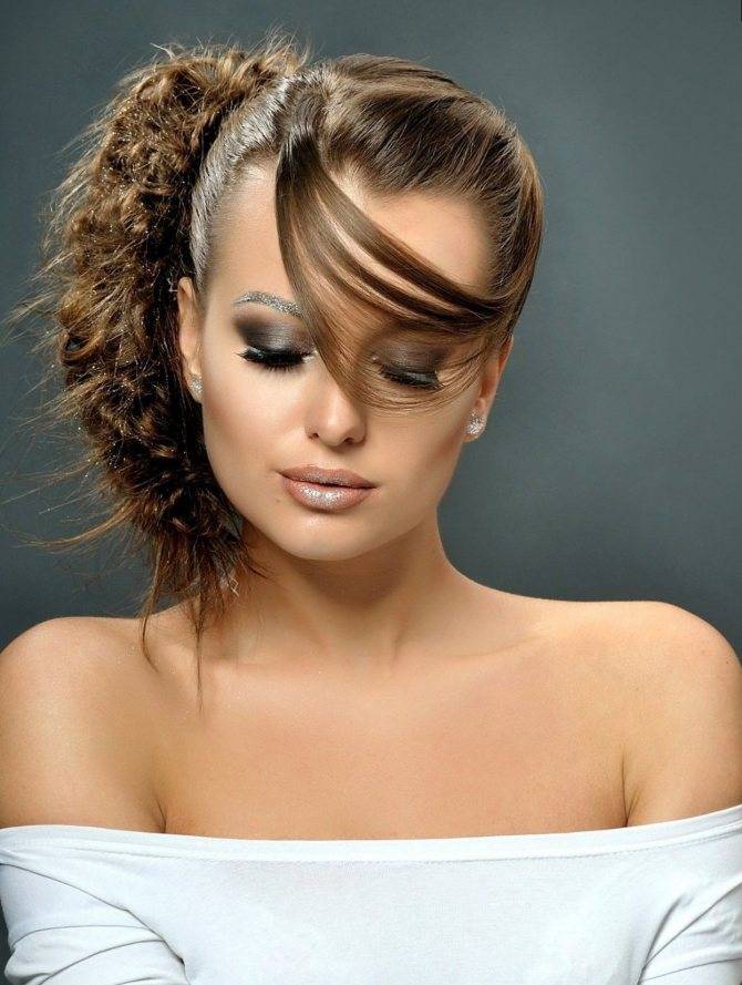 - Сделать пробор и перекинуть шевелюру на одну сторону.
