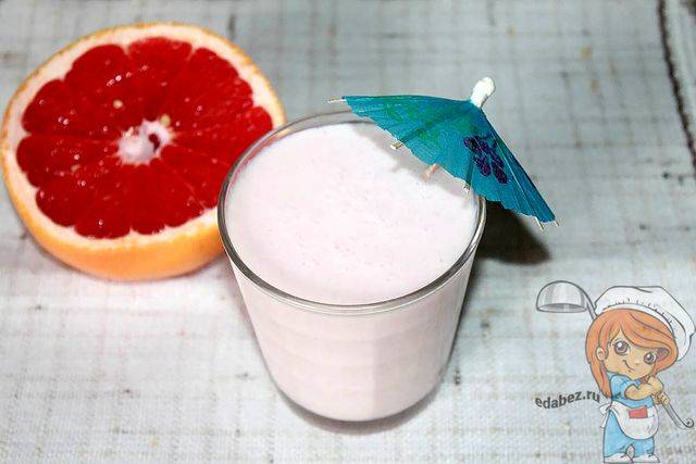 Такой молочный смузи из грейпфрута для похудения станет приятной добавкой к перекусу из снеков или напитком для завершения обеда. Вкусовой состав коктейля можно менять, добавляя свои любимые фрукты или ягоды.