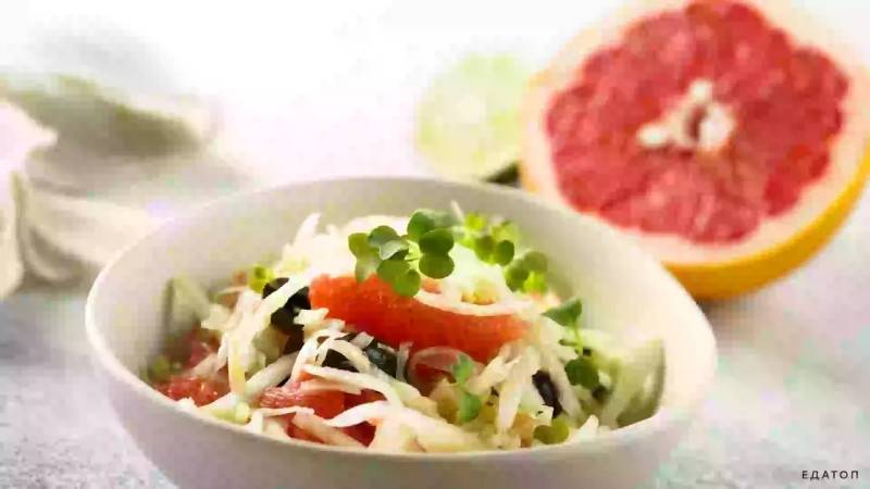 - Обед: один плод грейпфрута; 200 г салатика из овощей, заправленного маслом оливы; черный хлеб.