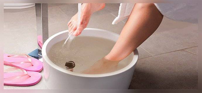 Перед обработкой пораженной области желательно сделать дезинфицирующую ванночку для ног с содой или солью.