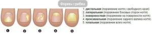 В медицине формы ногтевой грибковой инфекции зачастую называют также стадиями развития этого заболевания. С 1972 года принята следующая классификация форм (стадий)³.