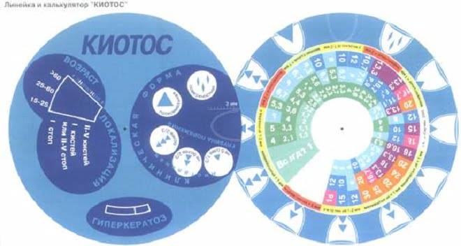 Выбор подхода зависит от тяжести заболевания. Её оценивают на основе индекса КИОТОС с помощью специального измерительного круга — его вы видите на фото.