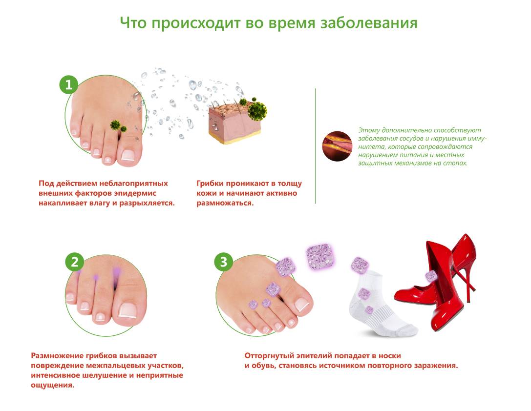 Болезненные ощущения при микозе пальцев стоп могут появиться по нескольким причинам: