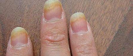Изменяется цвет ногтя: от белесого до желто-коричневого и даже серого