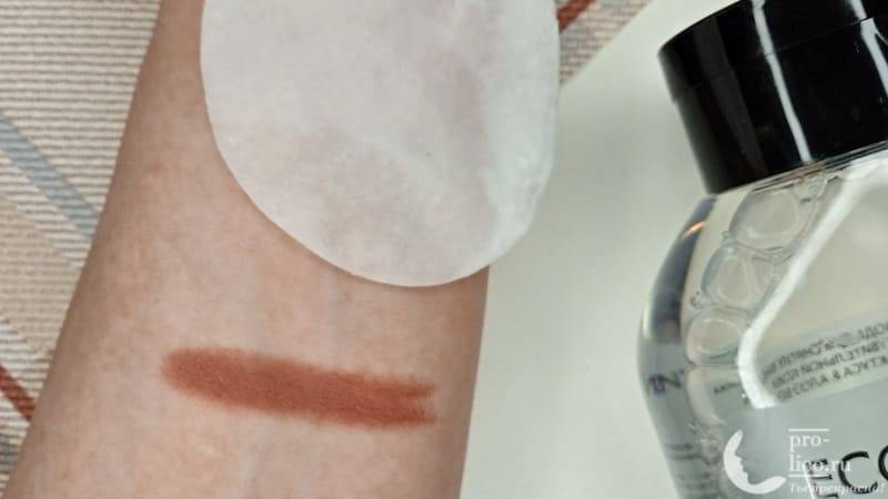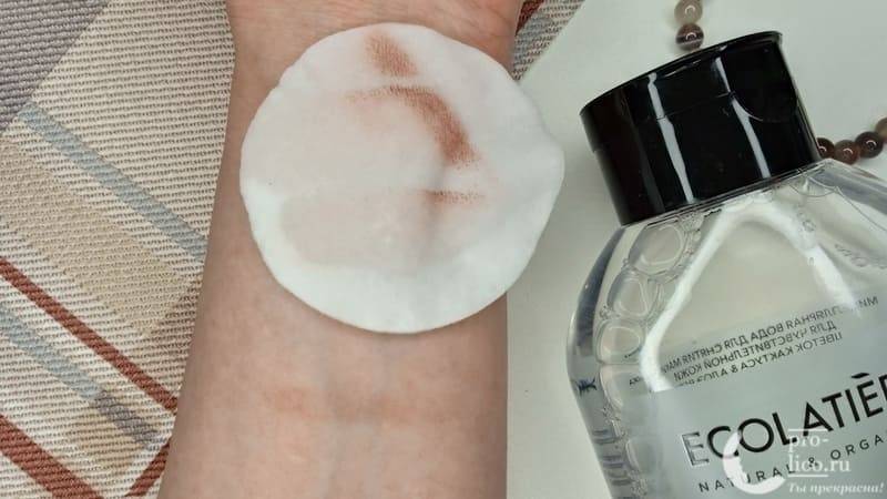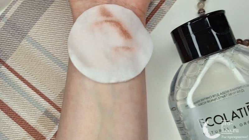Удаляется легко при помощи мицеллярной воды, сейчас я это наглядно продемонстрирую.