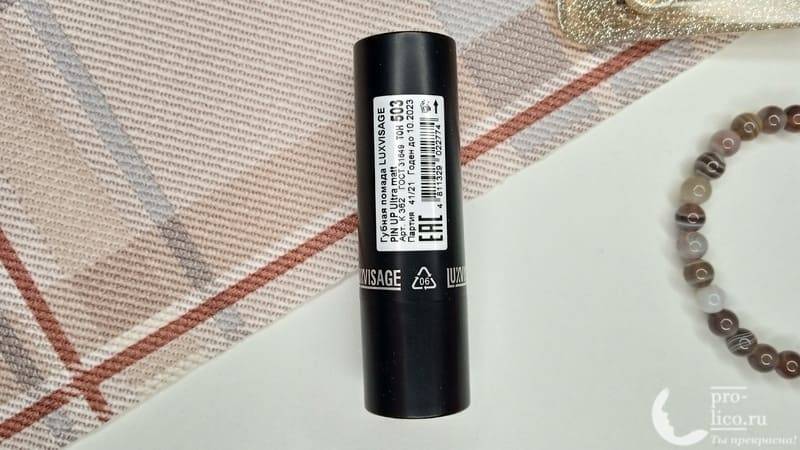 С торца крышечки также дублируется номер тона. Через стеклышко можно оценить цвет помады.