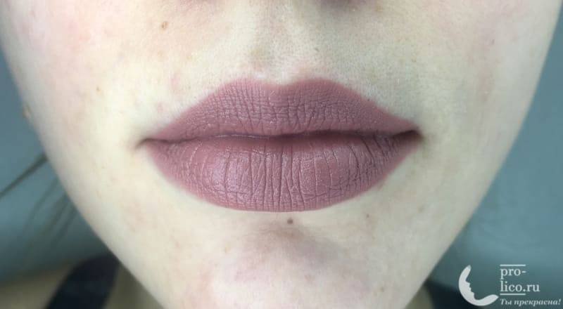 Сама стойкость у помады небольшая. В течении дня её необходимо обновлять примерно, каждые три-четыре часа и после еды. Поскольку помада очень бодро съедается, но в то же время, в отличии от жидких помад не окрашивает зубы. Вот так выглядят губы после того, как я их накрасила, я очень довольна результатом!
