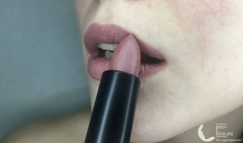 Как и все другие помады эту я наносила на чистые губы, либо поверх гигиенической помады. Стоит отметить, что поверх гигиенички цвет бледнее, чем без неё. Связано это с тем, что часть помады смешивается уходовой и за счет этого ложится менее плотным слоем.