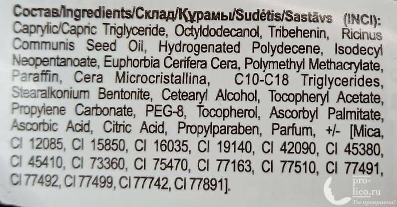 Настало время поподробнее остановиться на составе матовой помады Luxvisage Pin Up ultra matt и внимательно взглянуть, на компоненты, которые в него входят.
