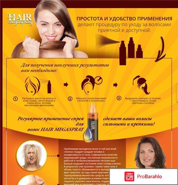 You can buy the spray in a pharmacy or in aspecialized stores. Now there are many fakes, and only the original Hair MegaSpray can give a positive result. Real responses (divorce it or the truth – decide for yourself) will help you make a choice. The remedy has no contraindications. It lasts for several weeks, if used in accordance with the manufacturer’s recommendations. To achieve the maximum result, it will be good to abandon the stowage means for the time of using the spray. Take multivitamin preparations, purchase a specialized soft comb that will not hurt the scalp, and do a light massage every day. Use shampoos that do not contain aggressive surfactants, parabens and silicones.