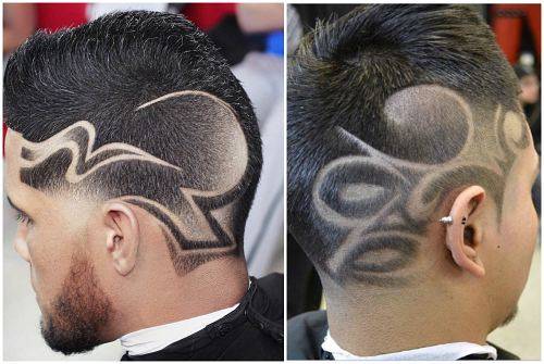 Некоторые мастера-цирюльники не используют для этого ножницы, а только край машинки. Таким образом создаются как хаир тату для мальчиков юного возраста, так и для солидных мужчин.