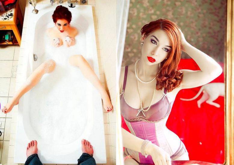 Фотосессии проходят, кажется, во всех уголках земного шара. Марокко, Москва, Рига, Филиппины, Бали, Малайзия – и это только начало списка. Девушка охотно примеряет различные образы, легко перевоплощаясь в сексапильную кошку, Снегурочку, невесту, супергероя или спортивную болельщицу