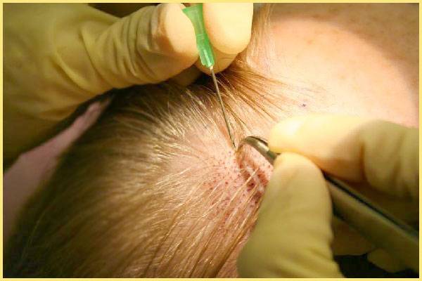 Используется местная анестезия. За 2 недели до операции пациенту подсаживают несколько волос, чтобы проследить за реакцией организма. Процент отторжения имплантов 1:100.