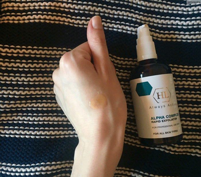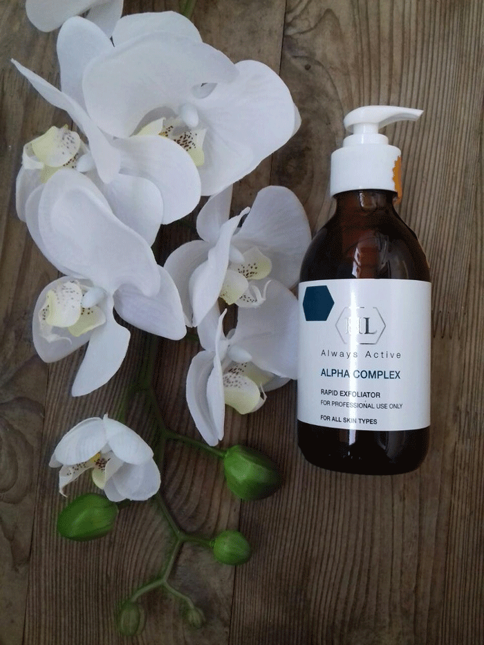 Этот химический кислотный пилинг подходит для всех типов кожи. По консистенции пилинг Holy Land Alpha немного гуще воды – это жидкость желто-коричневого цвета. В состав пилинга входят фруктовые кислоты, L-аскорбиновая и салициловая кислоты (антисептики), экстракт инжира (увлажняет и активизирует созревание гнойничков), фермент папаин (выравнивает эпидермис).