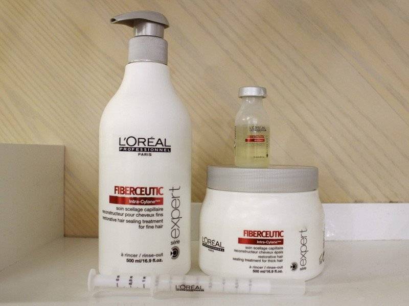 - L’oreal — комплекс Fiberceutic (Файберсьютик). В него входит сыворотка-филер, запечатывающее средство – это может быть крем или маска. Также серия включает шампунь и восстанавливающую маску.