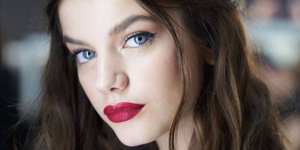 пусть лишь служит ей фоном. Нам нравится комбинация насыщенных губ цвета фуксии с влажной сияющей кожей, мягко очерченными бровями и слегка тронутыми тушью