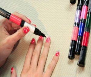 Чтобы получить идеальный рисунок, такими лаковыми фломастерами необходимо правильно пользоваться. Чтобы «зарядить» ручку, необходимо открыть лак с одной стороны и с помощью кисточки покрыть пластину основным цветом. Использовать, конечно, можно и ваши обычные лаки, имеющиеся в наличии.
