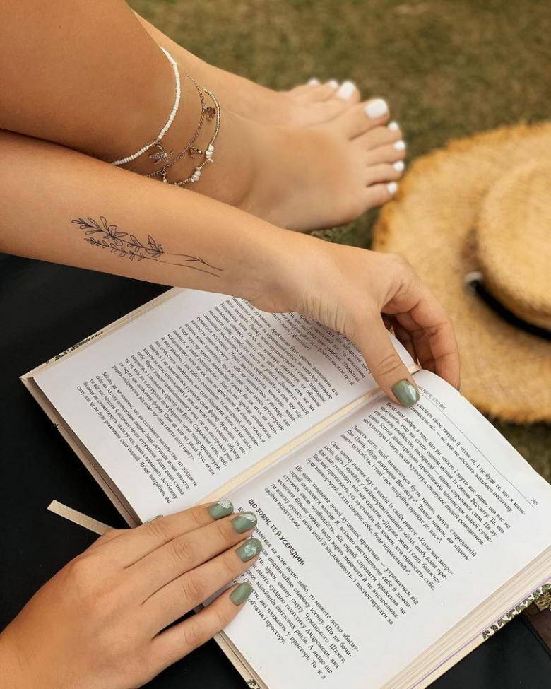 Некоторые девушки могут набивать свое имя или имя любимого человека. Место для такой надписи на теле может быть самое разнообразное, как правило, это: шея, ступни, позвоночник или запястье.