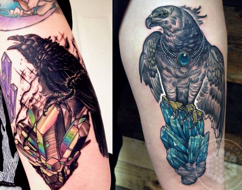 Если вам нужна татуировка кристалл, заказывайте разработку эскиза у мастера, уточнив, какие именно детали вам нужны, какой требуется размер, цвета и т.д. Можете просмотреть варианты в интернете, чтобы вдохновиться и при необходимости показать пример, который следует взять за основу при создании рисунка для вас.
