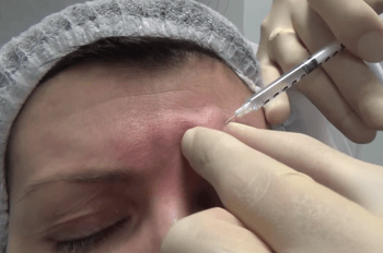 : возможны неприятные ощущения и изменения на лбу, такие как спазмы век, брови опускаются, возникают кровоизлияния под кожей, головная боль и небольшой отек в месте вколов. Все эти симптомы постепенно проходят и не наносят вреда общему состоянию.