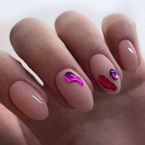 Этот забавный и запоминающийся дизайн станет модной причудой в 2022 году. Используйте голографическую фольгу для создания радужного эффекта. В результате на ногтях образуется трехмерное изображение, похожее на мерцающие стеклянные осколки. Ногтевой арт одинаково подходит для длинных и коротких ногтей.