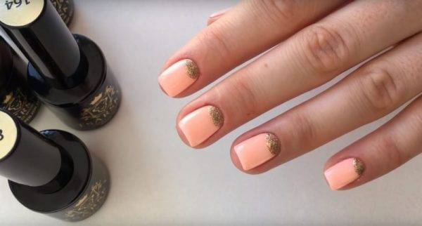 Персиковый маникюр на короткие ногти