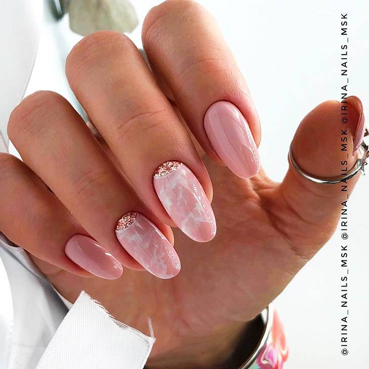 То, что нужно тем, кто хочет попробовать перламутровый маникюр, но не привык экспериментировать с формой. Для миндаля необходима длина свободного края минимум 4 мм.