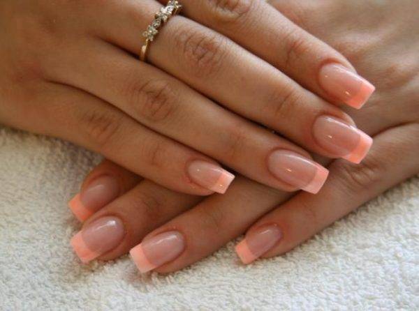 Персиковый френч, лунный маникюр