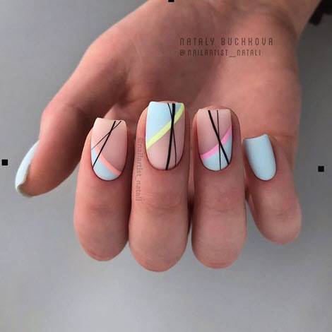 Весенний маникюр с линиями и полосками — фото 2020