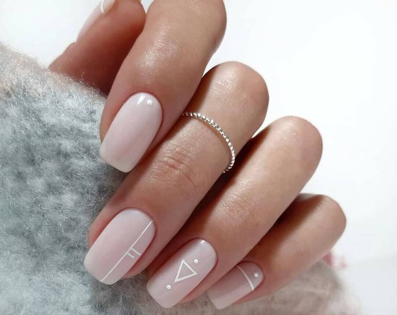 Геометрические фигуры. Создание геометрических фигур на ногтях также является популярным способом дизайна нюдовых ногтей. Это может быть что угодно: от простых линий до треугольников и квадратов