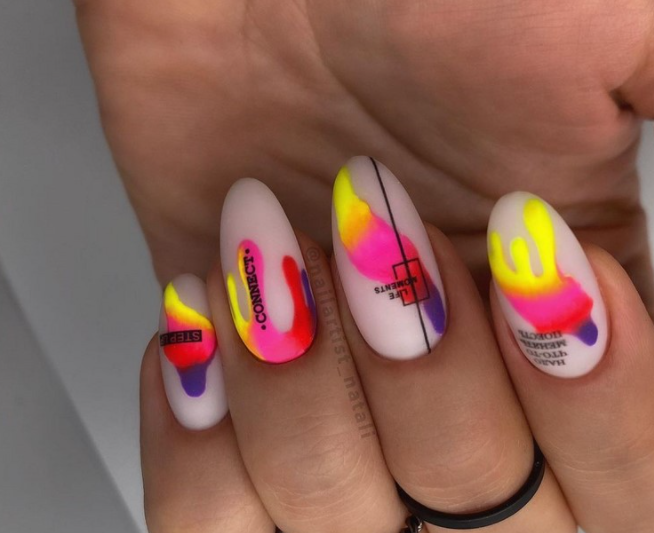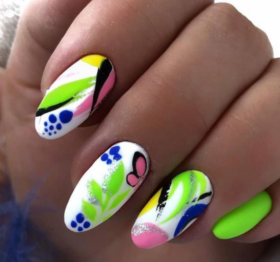 Зачем выбирать один цвет, если можно использовать несколько одновременно? Разноцветные ногти — отличная идея для тех, кто хочет сделать смелый и неповторимый маникюр. Не стесняйтесь проявлять творческий подход и воплощать в реальность этот смелый и модный дизайн. Оттенков на выбор так много, что можно растеряться! Более того, вы можете сочетать выбранные цвета с креативным декором. Это будет выглядеть очень молодёжно и стильно.