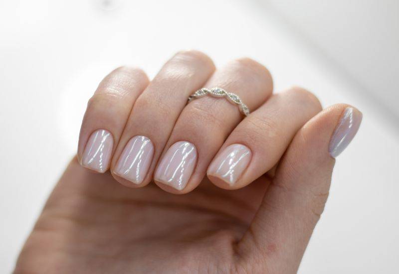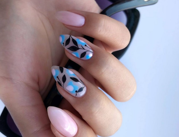 Если вы ищете интересные идеи с фото для маникюра на коротких ногтях на весну и лето, обратите внимание на все оттенки голубого, но в пастельной гамме. Ориентиром станет незабудковый или небесный тон